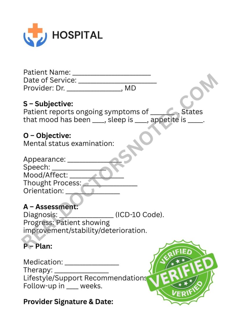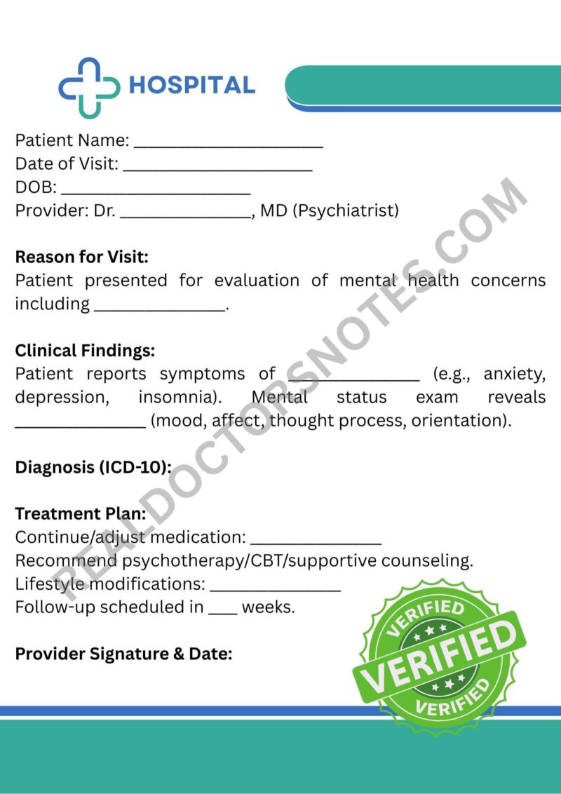 - Work or School proof: These Online psychiatrist doctor notes are meant for employers or educational institutes to record absence due to any mental disorders, such as anxiety, depression, or stress.