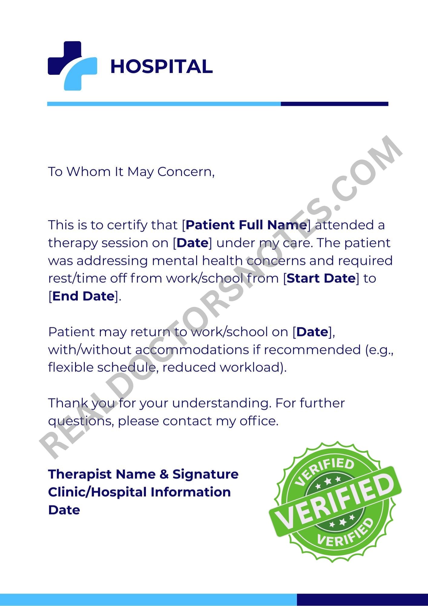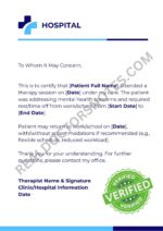 - The therapist will then issue you a doctor’s note digitally signed, indicating that you need leave or adjustments, but it shouldn’t mention any sensitive details.